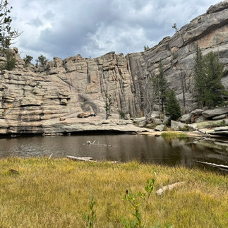 On Saturday 20th, we decided to hike the Gem Lake Trail and Lumpy Ridge Loop up towards the "Twin Owls" rock formation, which you can see from anywhere in town. It is a marvelous hike, where there are mix of easy and steeper bits and the views keep changing. Each time there is a break in the trees the views back over the valley and town are wonderful. At the top is a small pond and a rock face where the climbers like to play, while the rest of us eat our sandwiches.