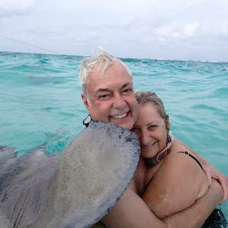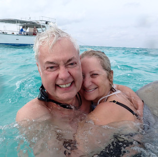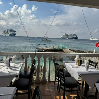Our first stop was George Town, Grand Cayman, where we had booked an excursion to swim with stingrays. This turned out to be a great time. A boat takes you out to a sand bar, where the water is about three feet deep and the guys from the boat persuade stingrays to some play with the tourists in exchange for handfuls of squid. Much more fun than it sounds. The comedy started with the 10 attempts to moor the boat on the sand bar before we could get in with the rays! Once back on shore we found a marvelous Italian restaurant right on the beach for a late lunch.